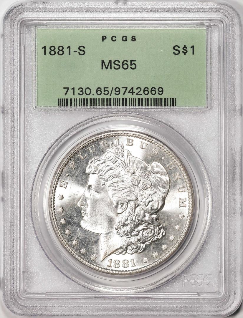 1881-S $1 Morgan Silver Dollar Coin PCGS MS65 Old Green Holder