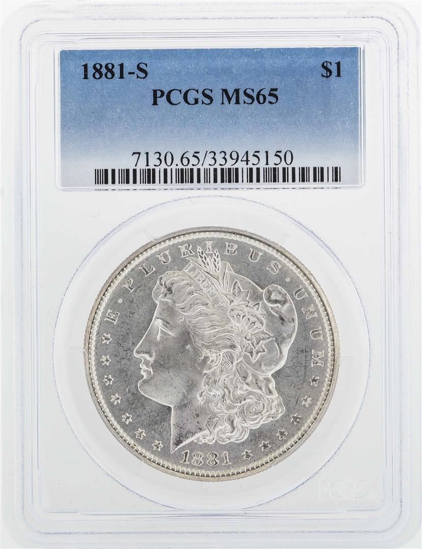 One 1881-S $1 Morgan Silver Dollar Coin PCGS MS65. PCGS Graded.