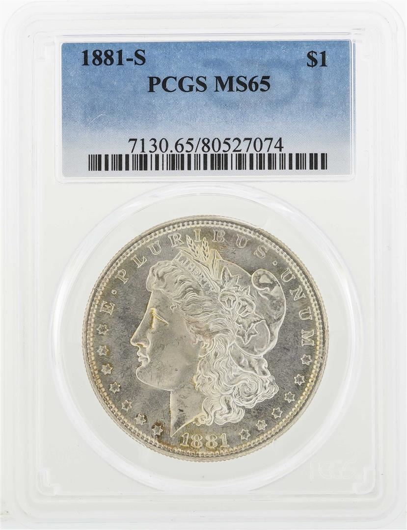 One 1881-S $1 Morgan Silver Dollar Coin PCGS MS65. PCGS Graded.