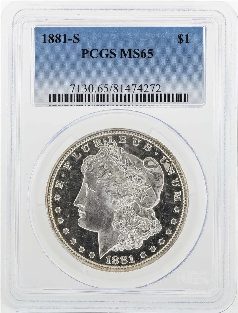 One 1881-S $1 Morgan Silver Dollar Coin PCGS MS65. PCGS Graded.
