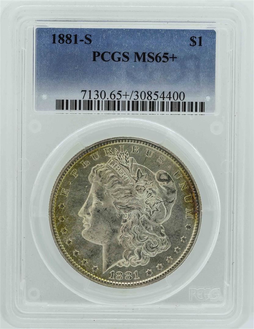 One 1881-S $1 Morgan Silver Dollar Coin PCGS MS65+. PCGS Graded.