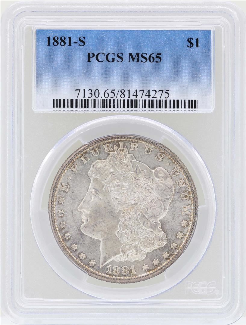One 1881-S $1 Morgan Silver Dollar Coin PCGS MS65. PCGS Graded.