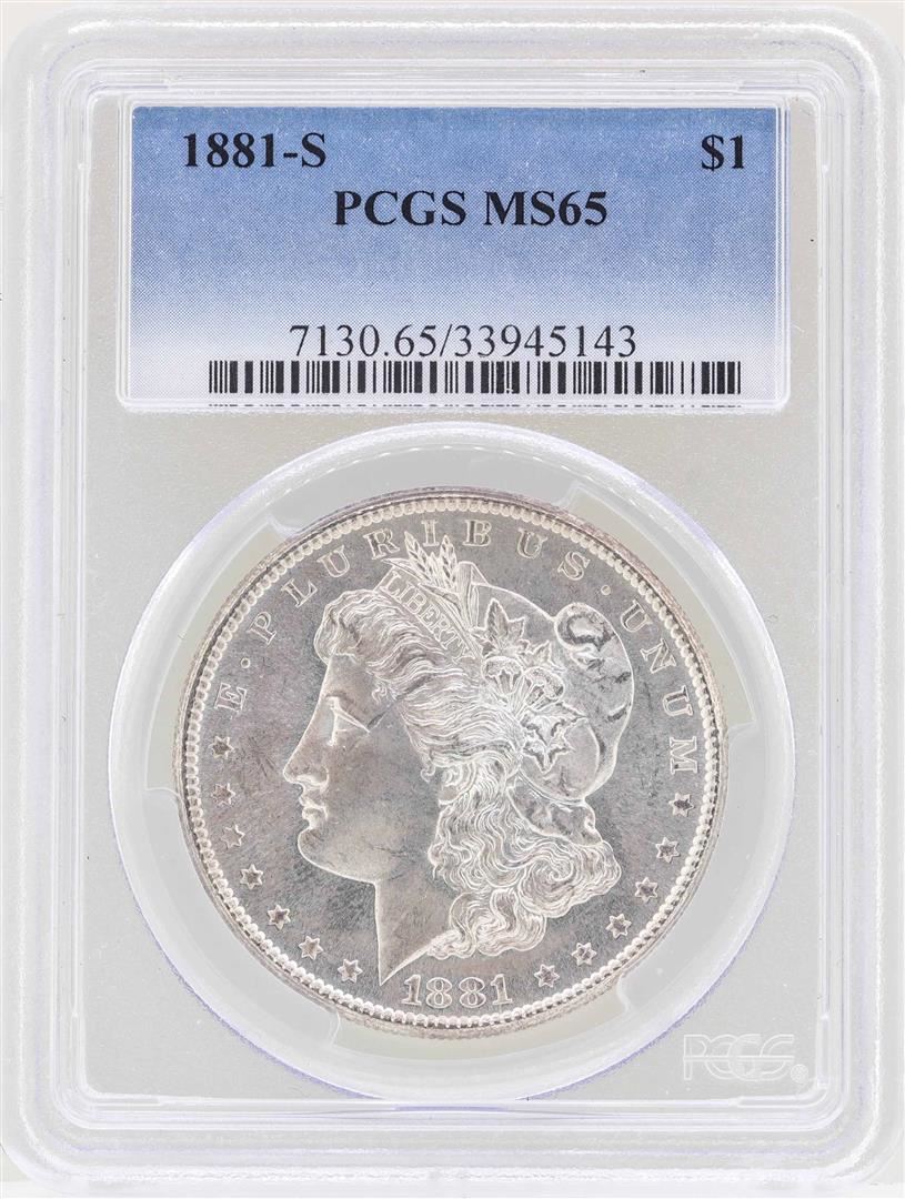 One 1881-S $1 Morgan Silver Dollar Coin PCGS MS65. PCGS Graded.