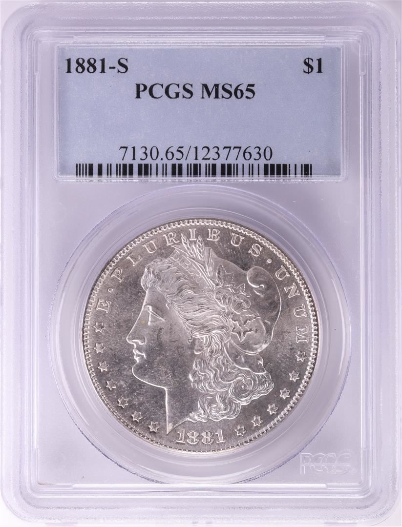 One 1881-S $1 Morgan Silver Dollar Coin PCGS MS65.