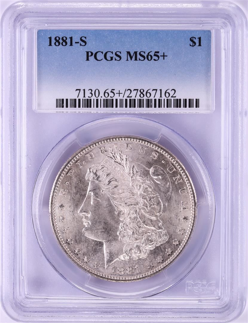 One 1881-S $1 Morgan Silver Dollar Coin PCGS MS65+. PCGS Graded.