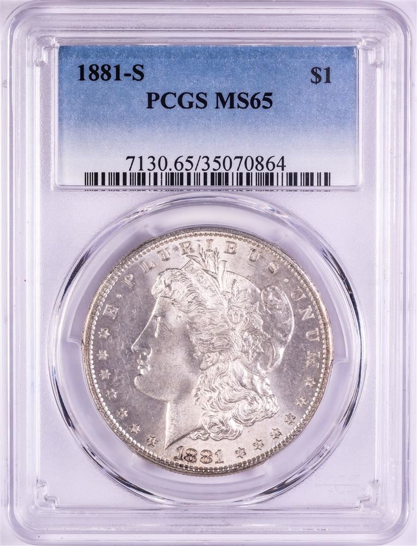 One 1881-S $1 Morgan Silver Dollar Coin PCGS MS65. PCGS Graded.