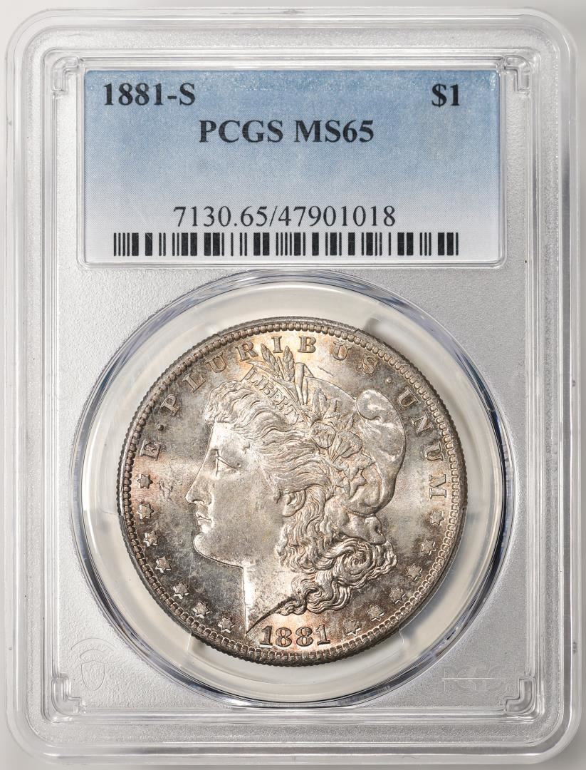 One 1881-S $1 Morgan Silver Dollar Coin PCGS MS65. PCGS Graded.