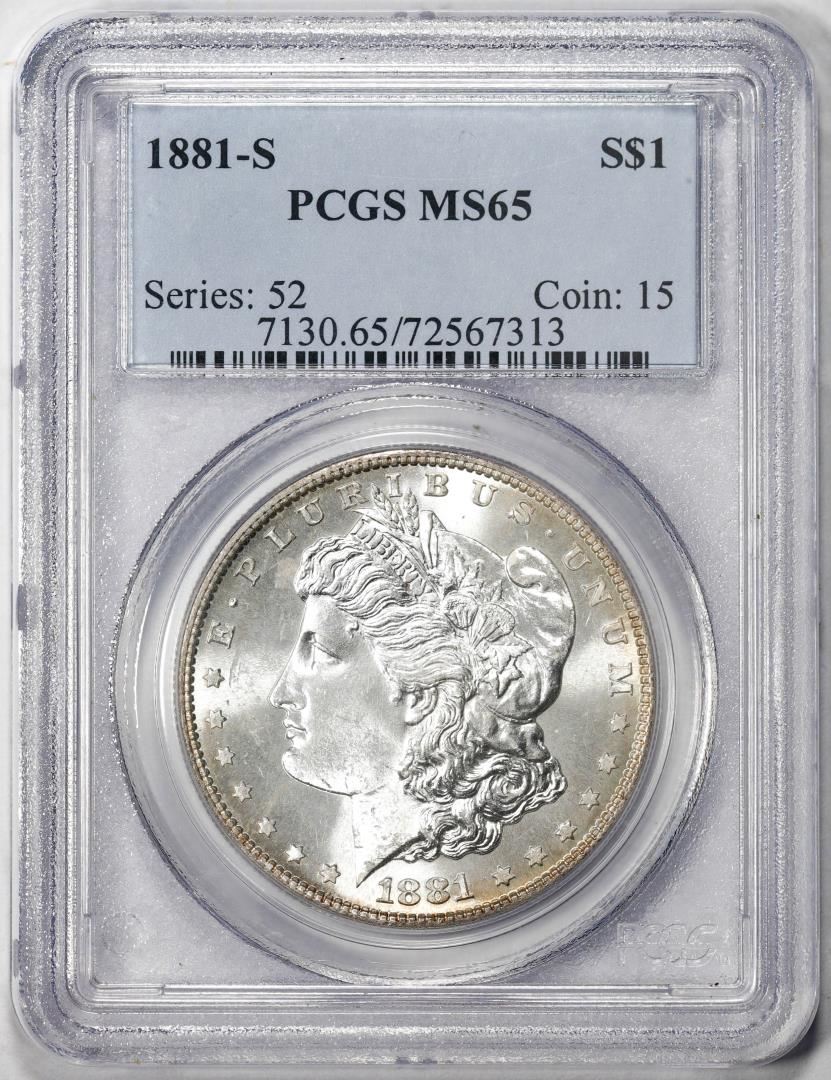 One 1881-S $1 Morgan Silver Dollar Coin PCGS MS65.