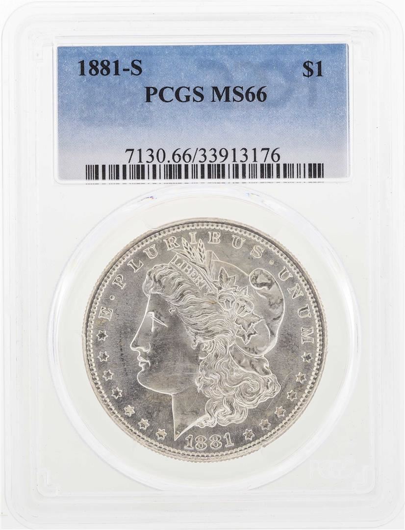 One 1881-S $1 Morgan Silver Dollar Coin PCGS MS66. PCGS Graded.