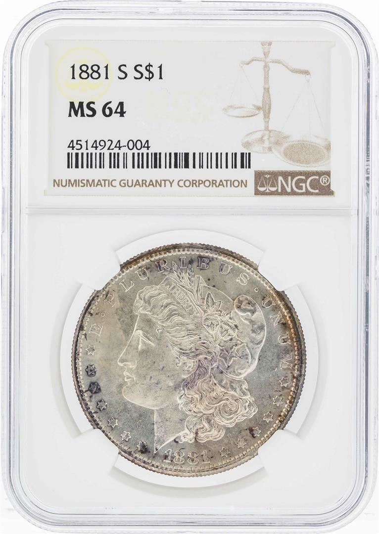1881-S $1 Morgan Silver Dollar Coin w/ Nice Toning NGC MS64