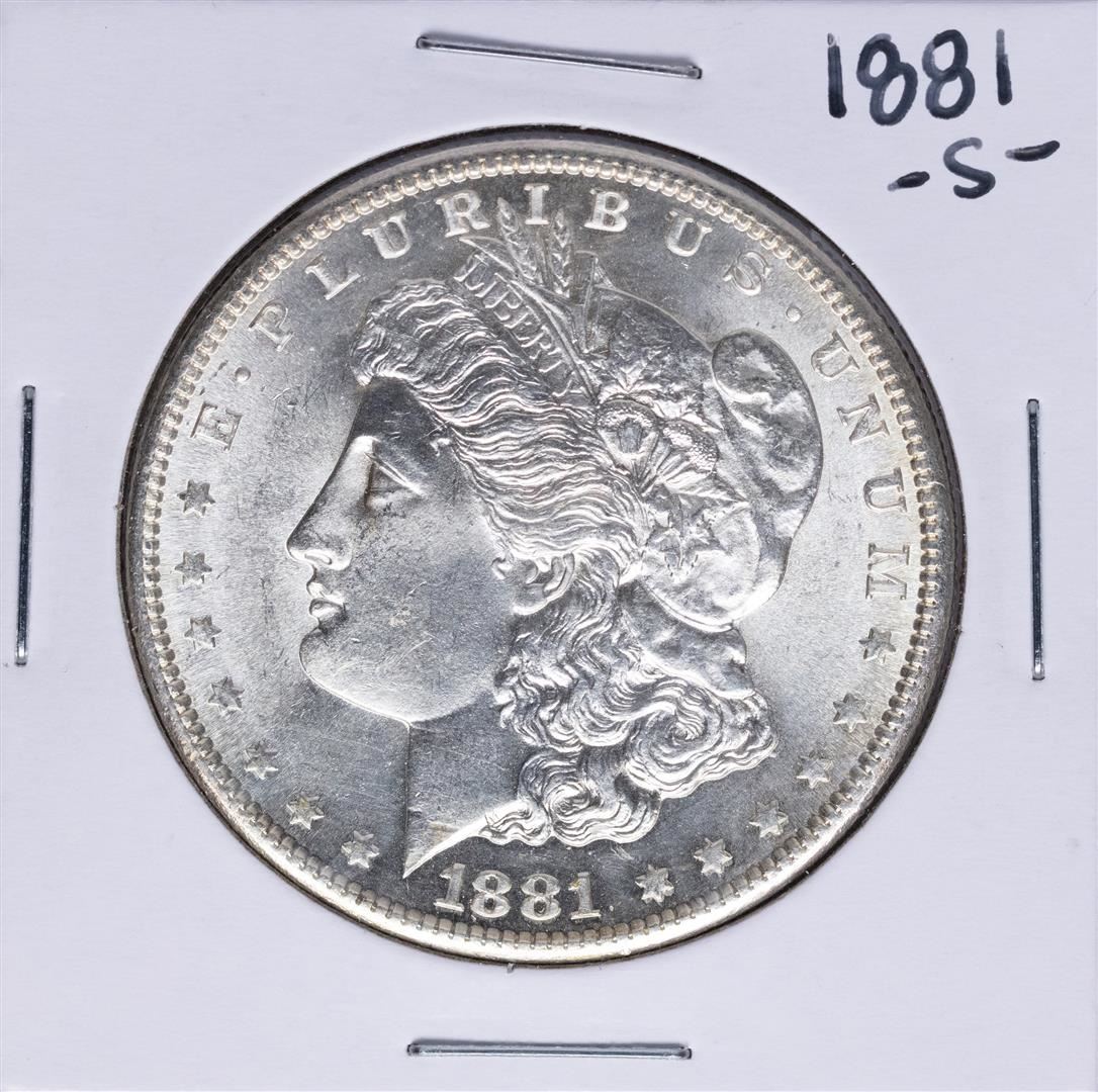 One 1881-S $1 Morgan Silver Dollar Coin.