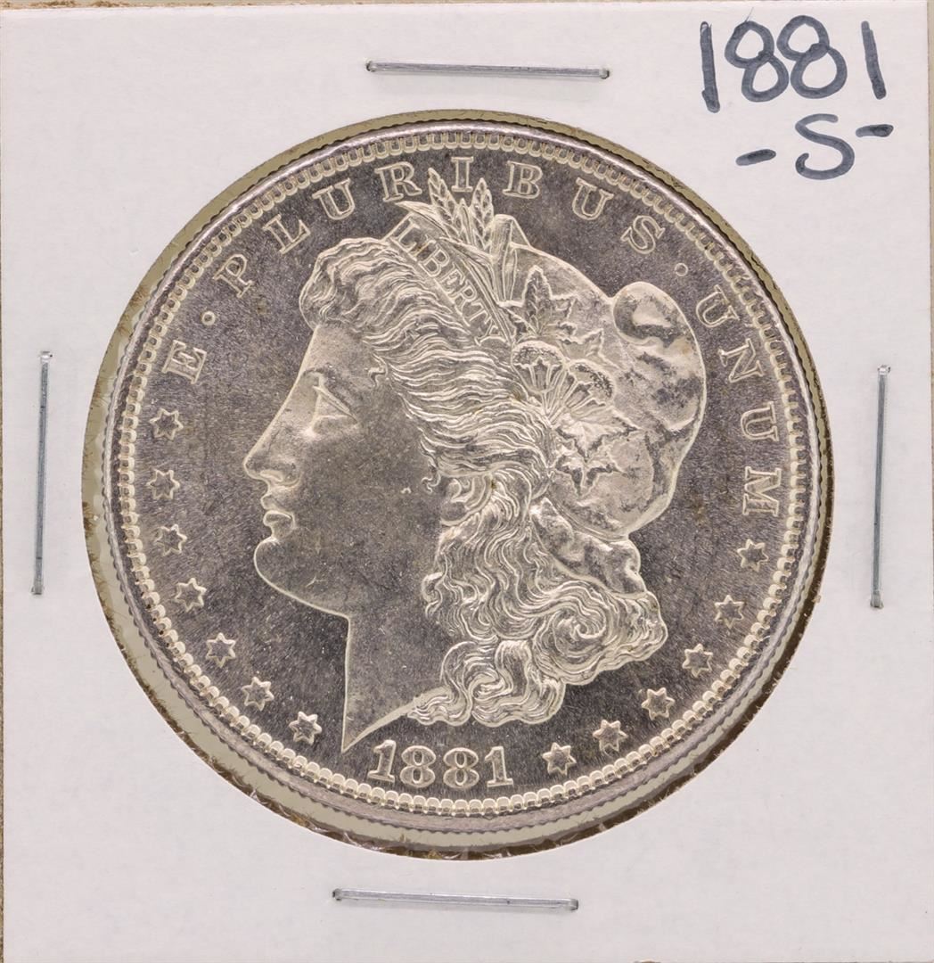 One 1881-S $1 Morgan Silver Dollar Coin.