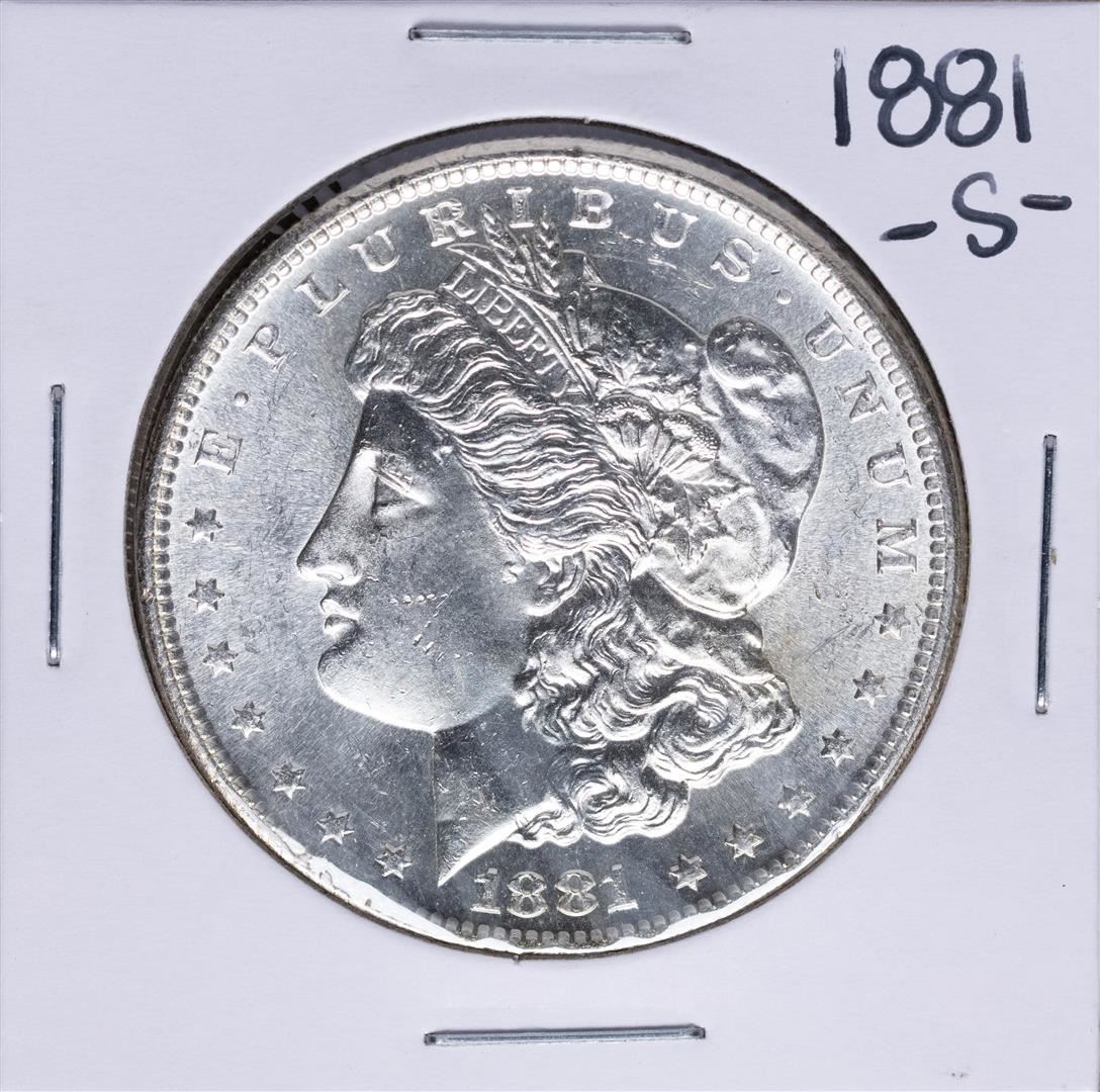 One 1881-S $1 Morgan Silver Dollar Coin.