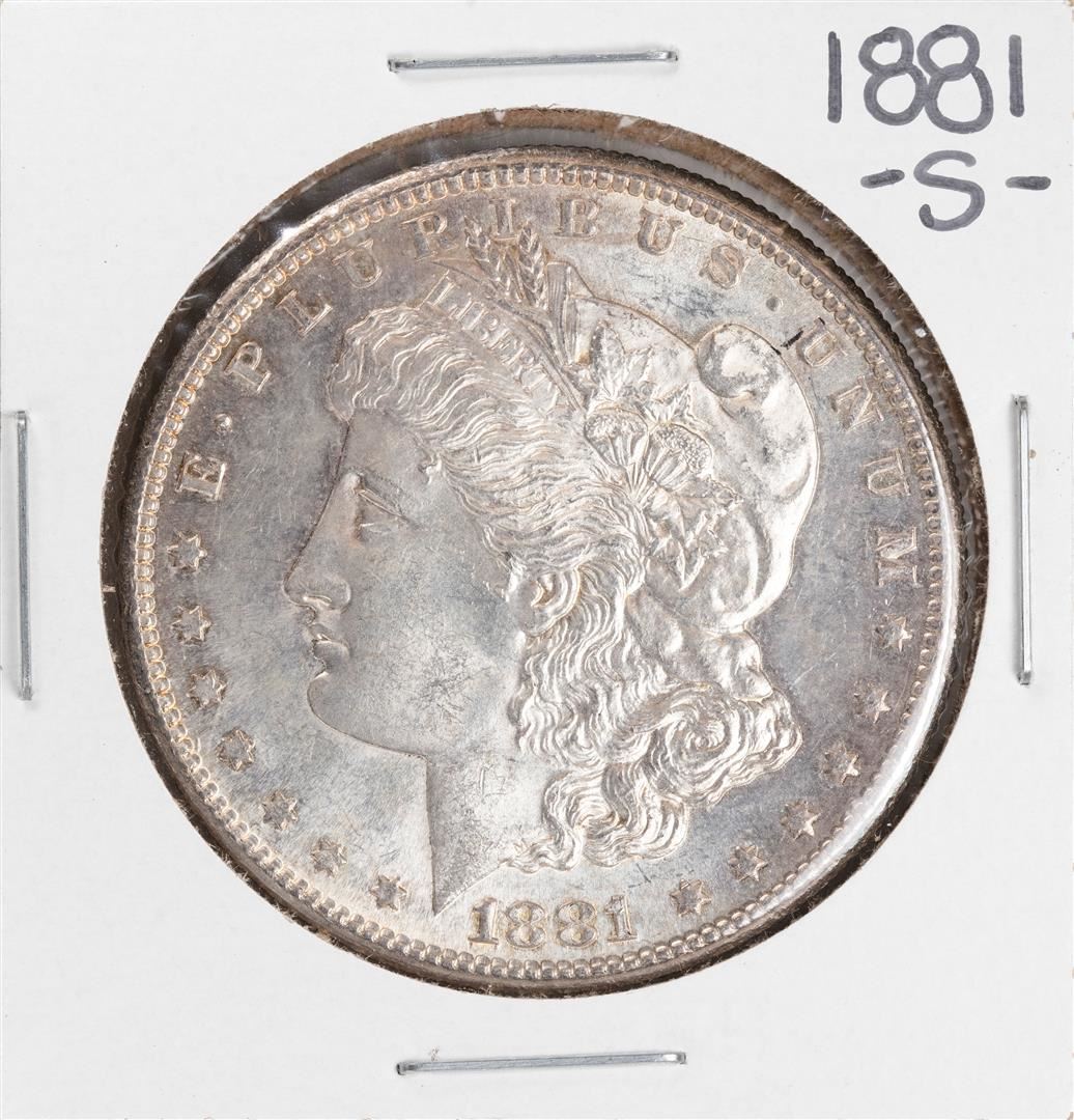 One 1881-S $1 Morgan Silver Dollar Coin.