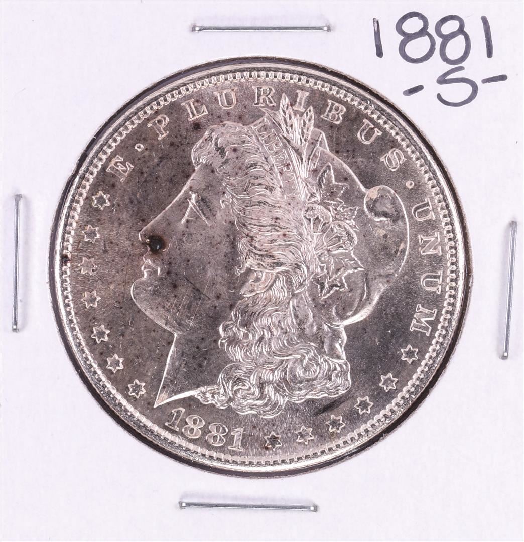 One 1881-S $1 Morgan Silver Dollar Coin.