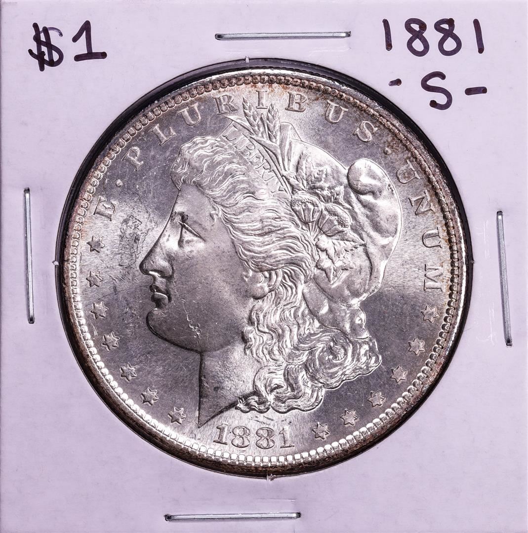 One 1881-S $1 Morgan Silver Dollar Coin.