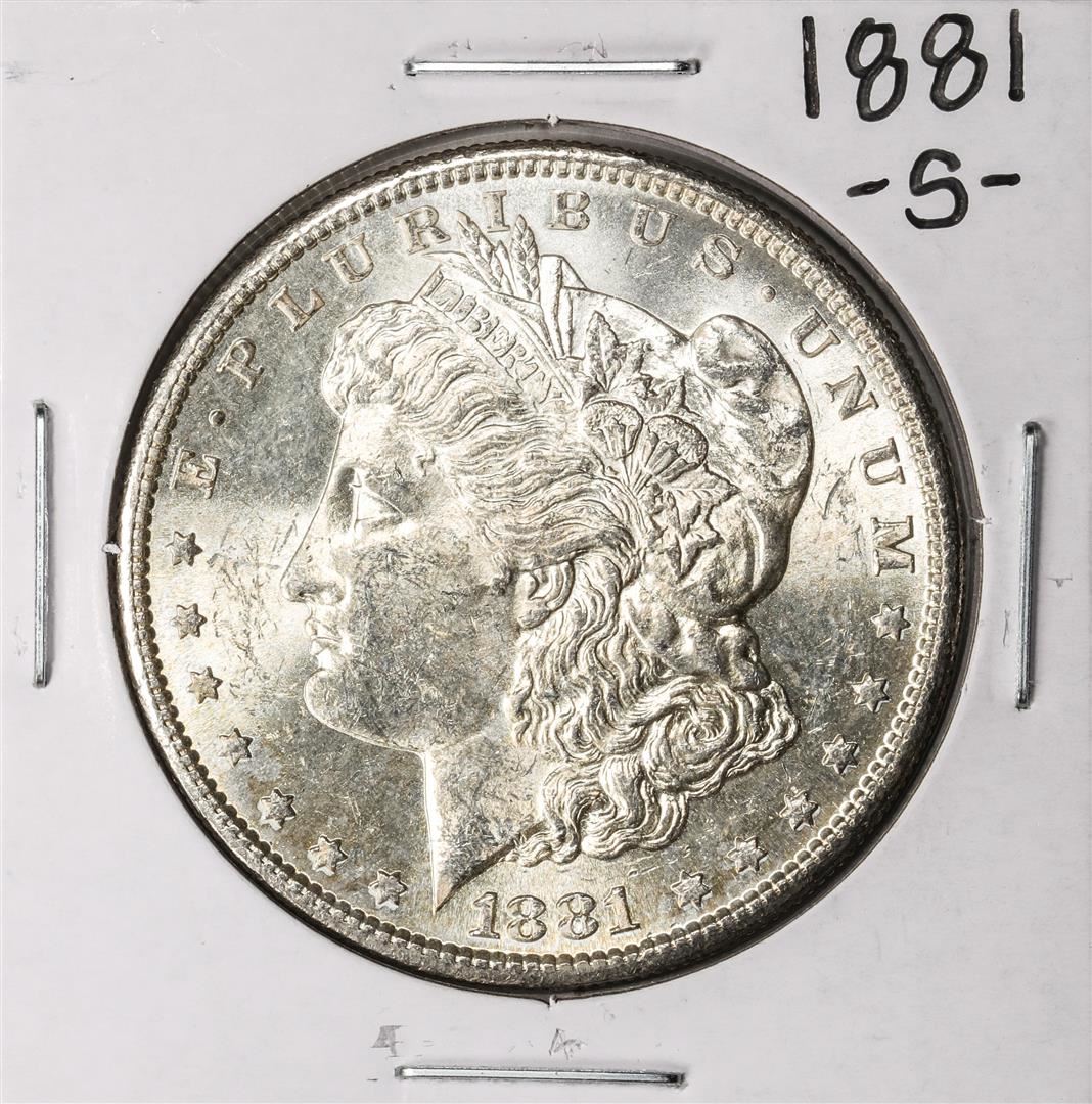 One 1881-S $1 Morgan Silver Dollar Coin.