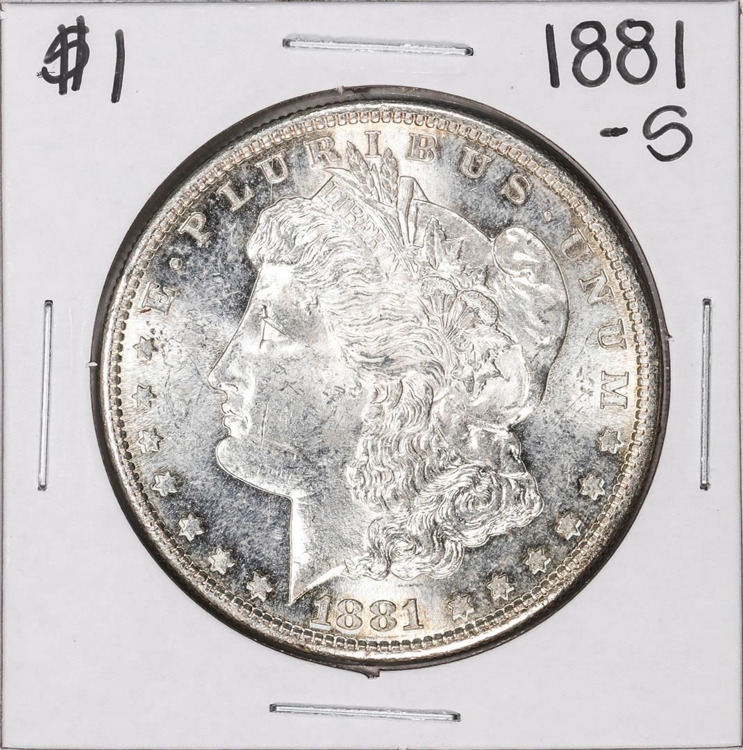 One 1881-S $1 Morgan Silver Dollar Coin.