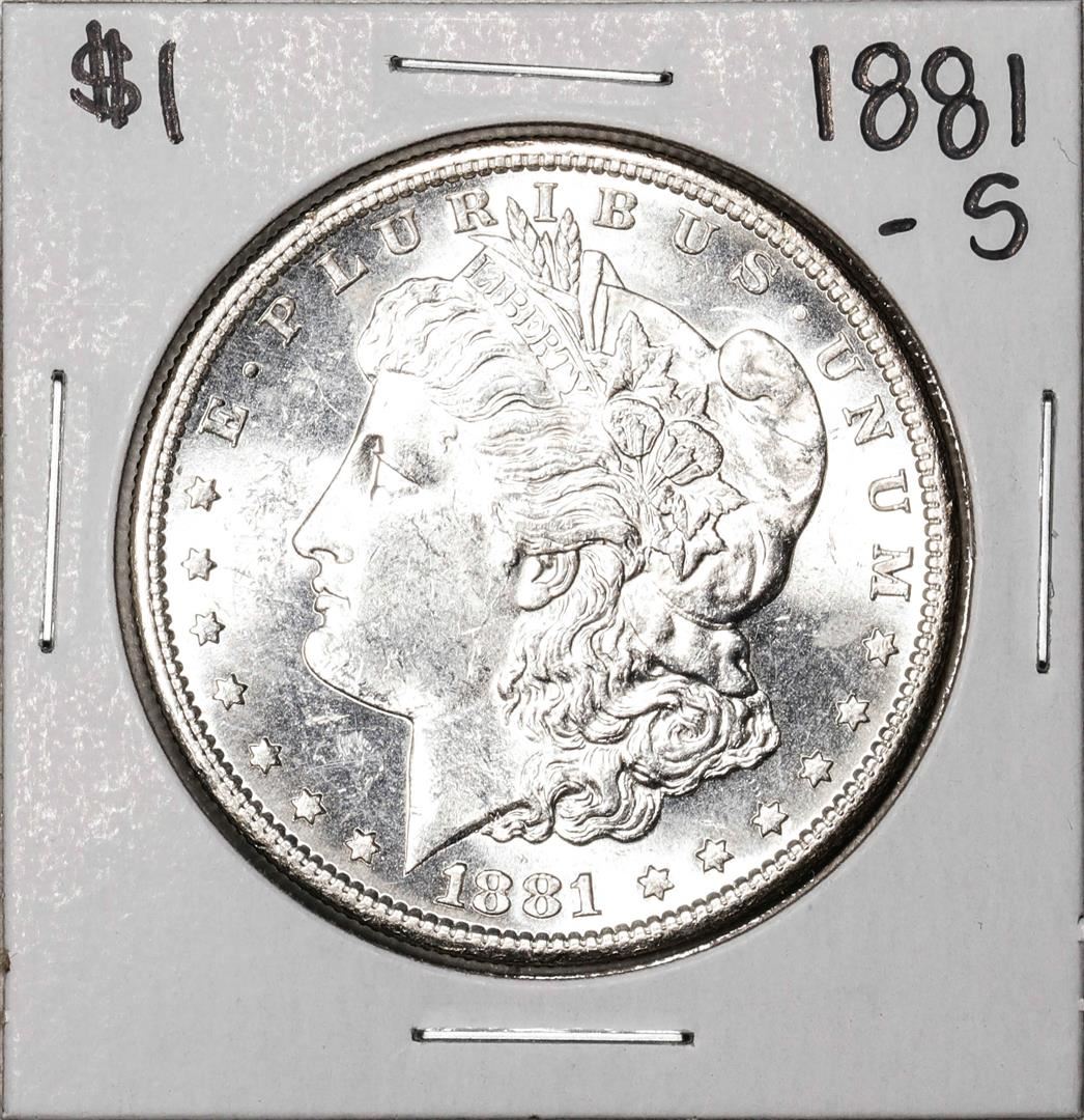 One 1881-S $1 Morgan Silver Dollar Coin.