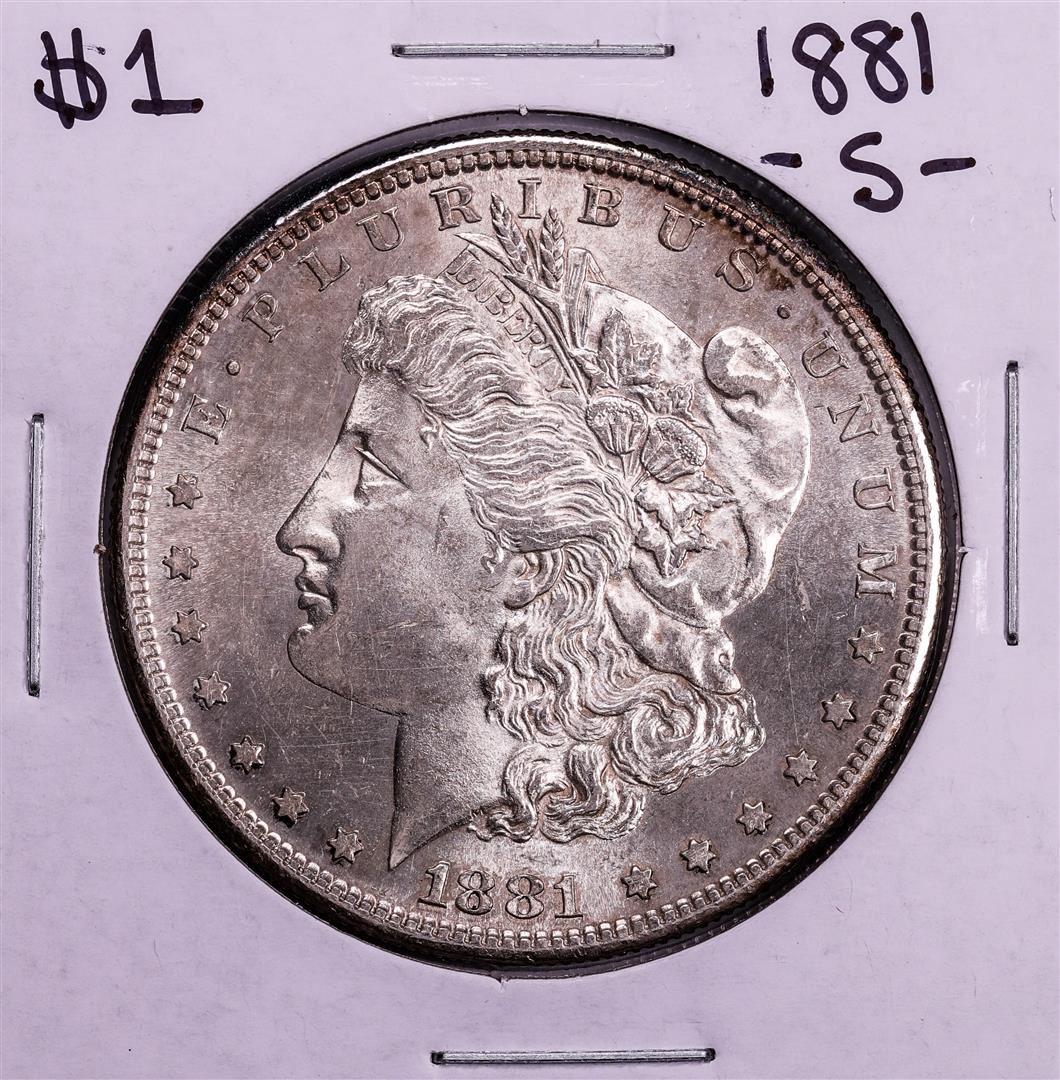 One 1881-S $1 Morgan Silver Dollar Coin.