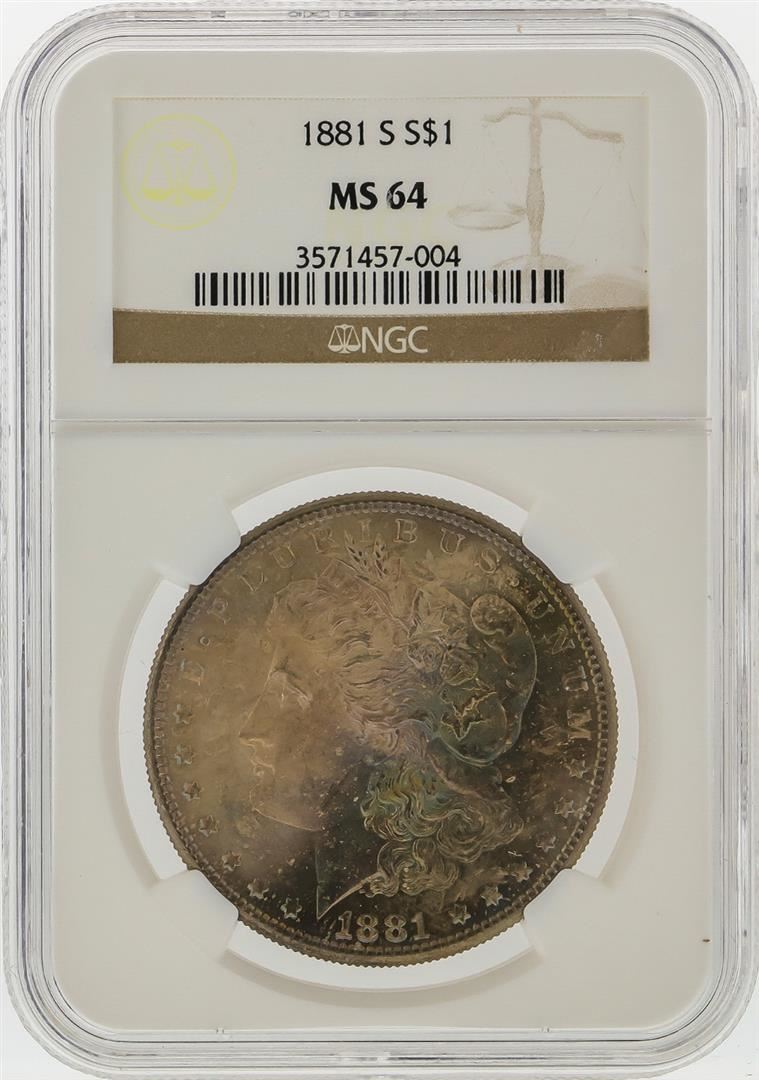 One 1881-S $1 Morgan Silver Dollar NGC Graded MS64. NGC Certified.