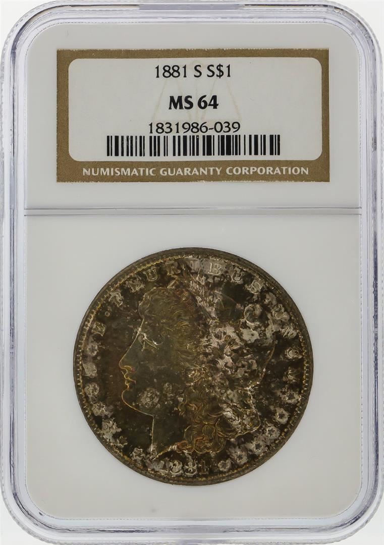 One 1881-S $1 Morgan Silver Dollar NGC Graded MS64. NGC Certified.