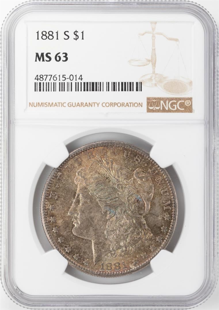One 1881-S $1 Morgan Silver Dollar NGC MS63 Nice Toning. NGC Certified.
