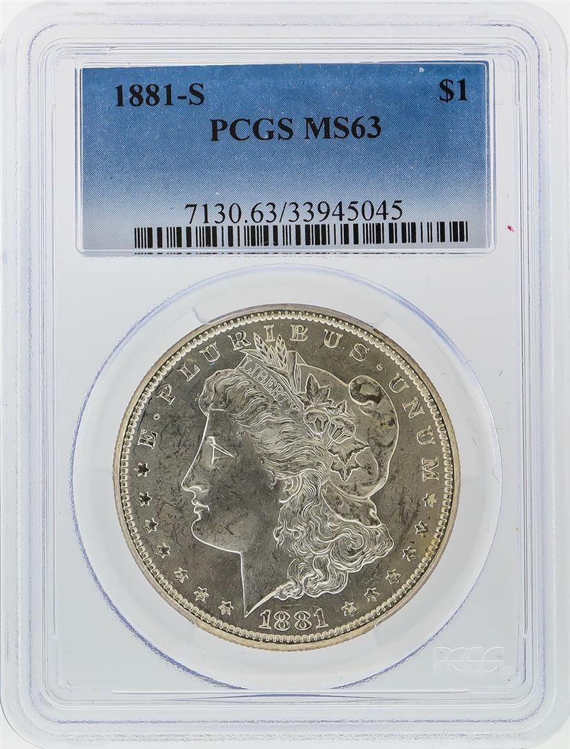 One 1881-S $1 Morgan Silver Dollar PCGS Graded MS63. PCGS Graded.