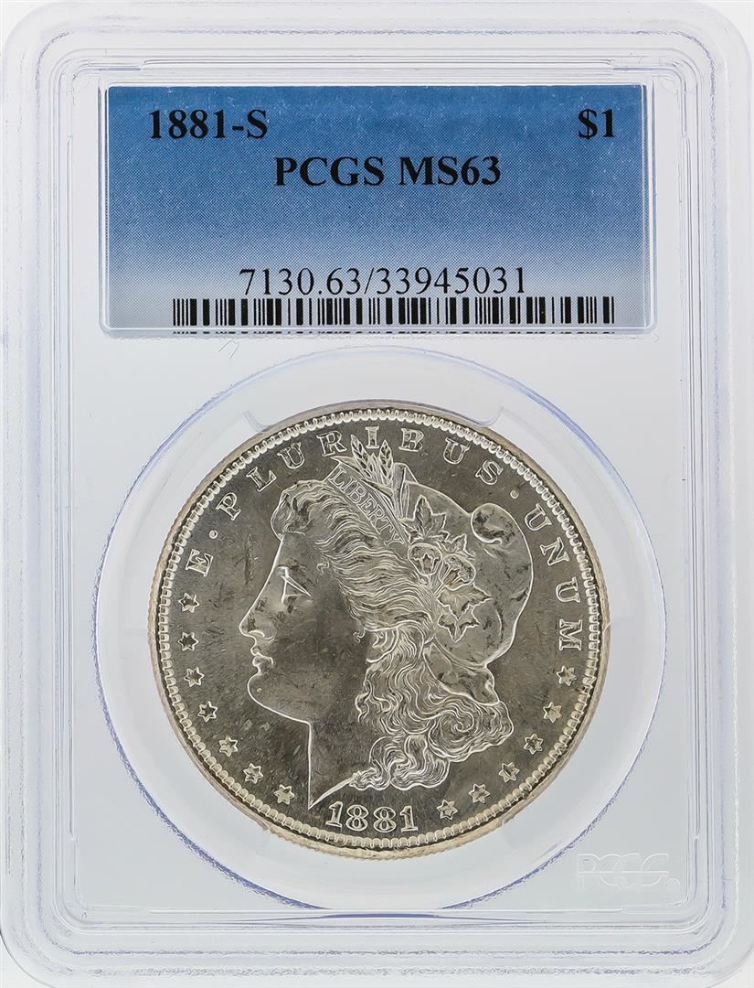 One 1881-S $1 Morgan Silver Dollar PCGS Graded MS63. PCGS Graded.