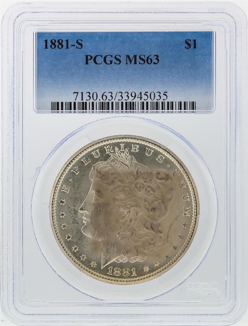 One 1881-S $1 Morgan Silver Dollar PCGS Graded MS63. PCGS Graded.