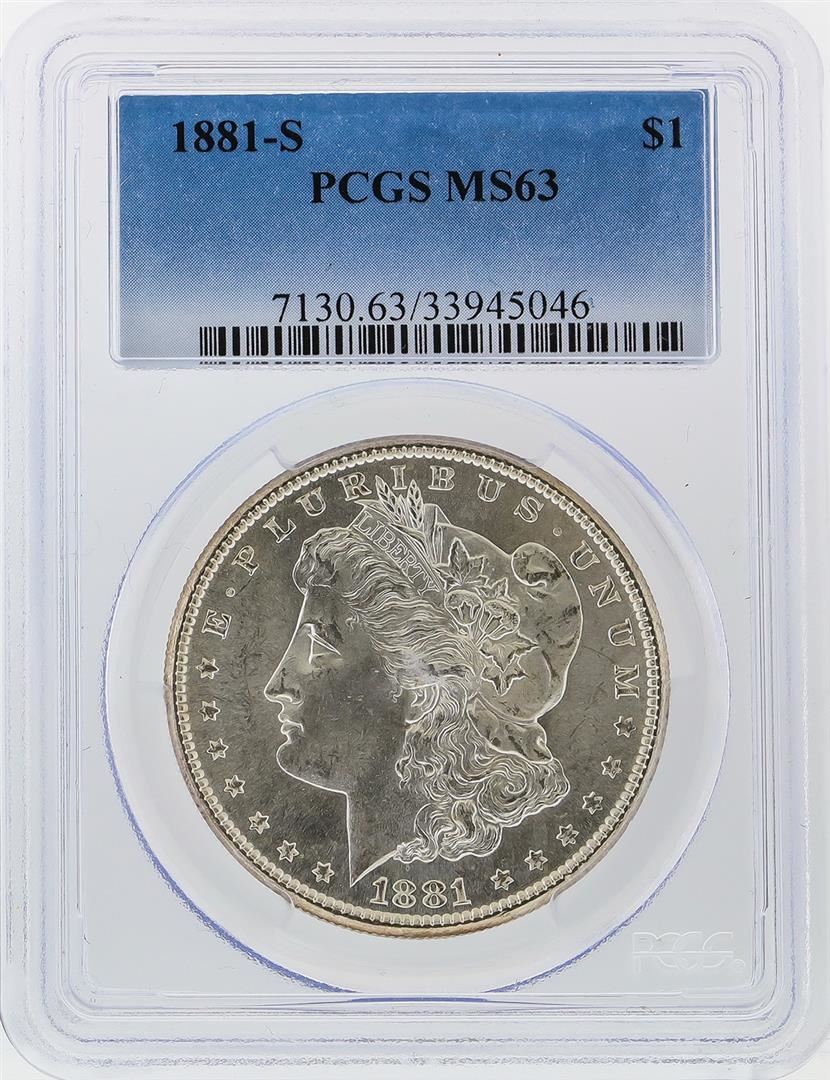 One 1881-S $1 Morgan Silver Dollar PCGS Graded MS63. PCGS Graded.