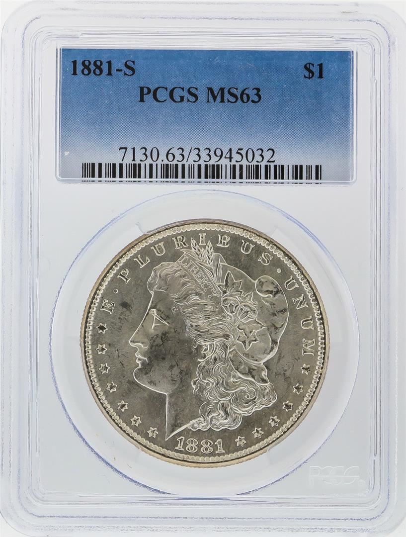 One 1881-S $1 Morgan Silver Dollar PCGS Graded MS63. PCGS Graded.
