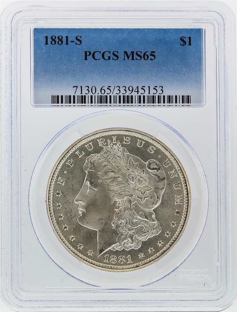 One 1881-S $1 Morgan Silver Dollar PCGS Graded MS65. PCGS Graded.