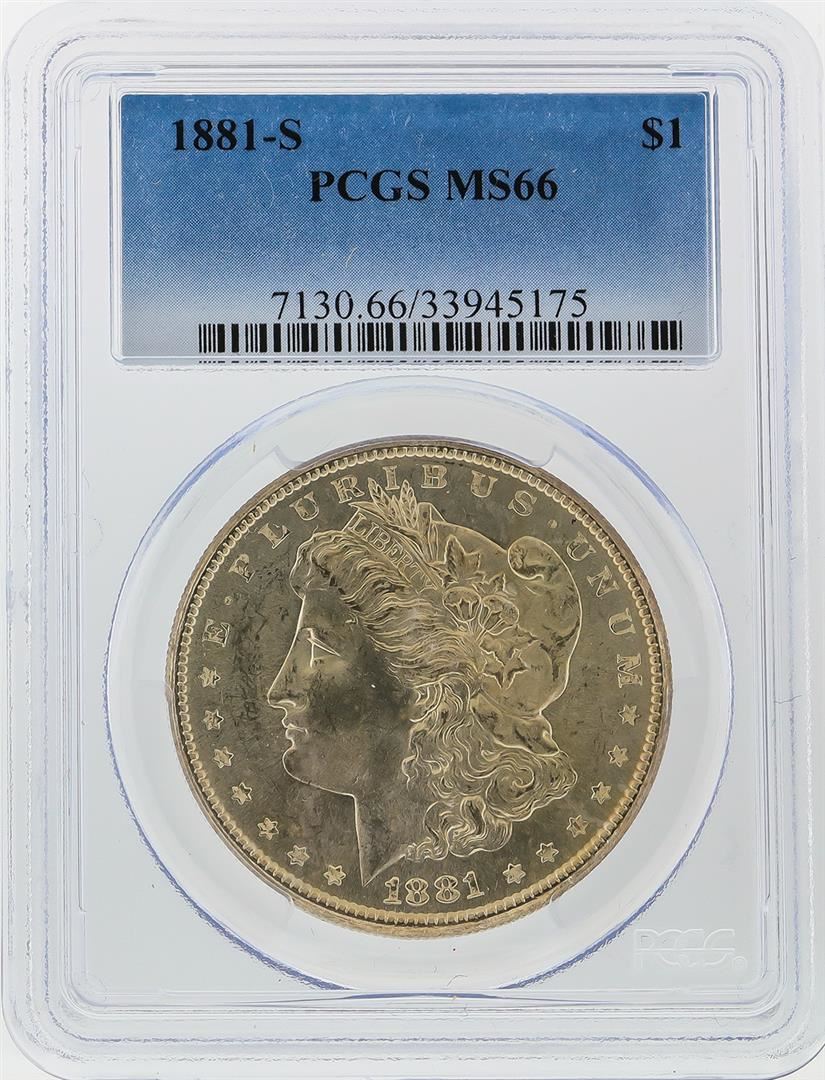One 1881-S $1 Morgan Silver Dollar PCGS Graded MS66. PCGS Graded.