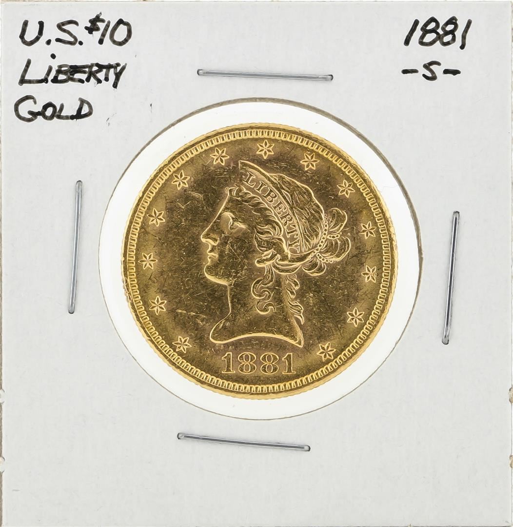 One 1881-S $10 Liberty Head Eagle Gold Coin.