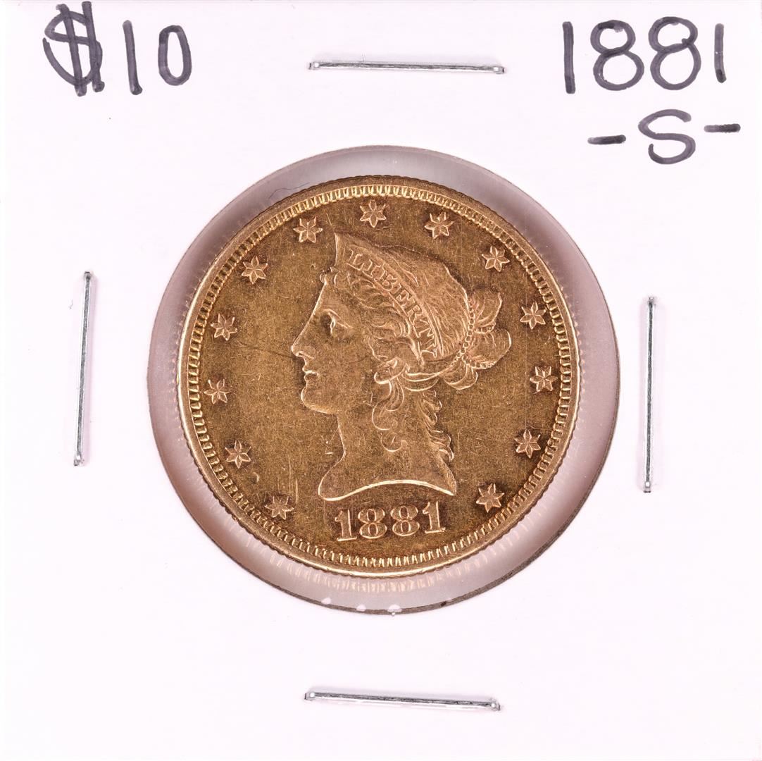 One 1881-S $10 Liberty Head Eagle Gold Coin.
