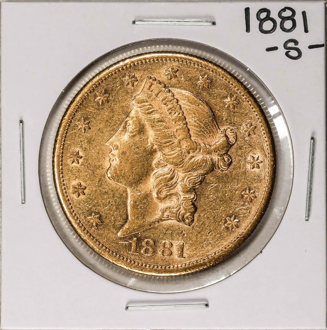 One 1881-S $20 Liberty Head Double Eagle Gold Coin.