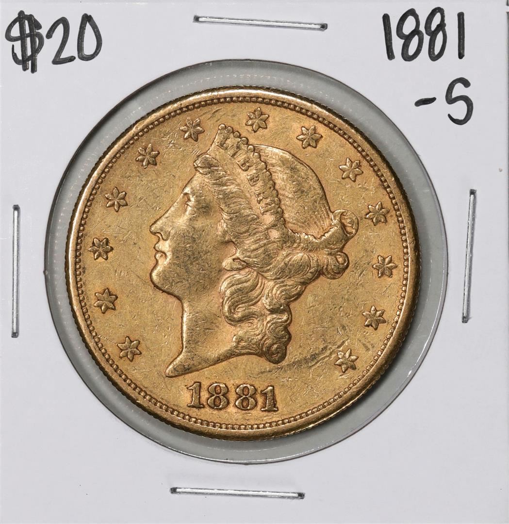 One 1881-S $20 Liberty Head Double Eagle Gold Coin.