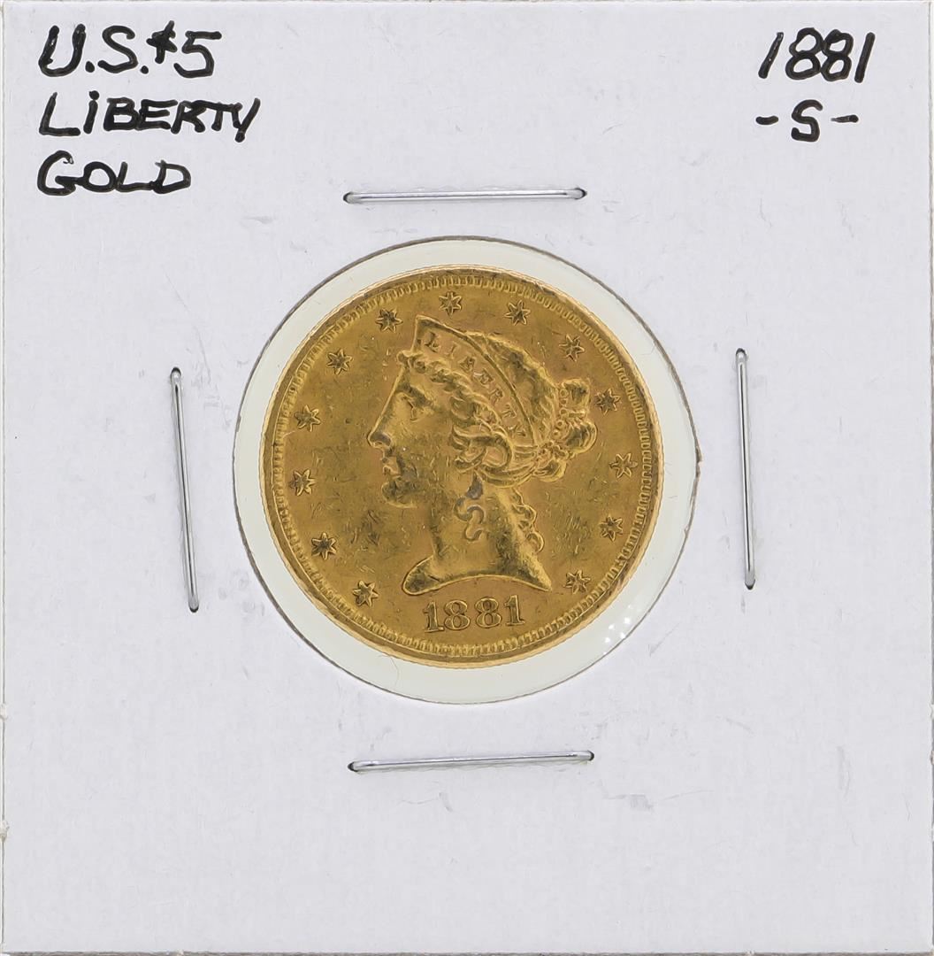 One 1881-S $5 Liberty Head Half Eagle Gold Coin.