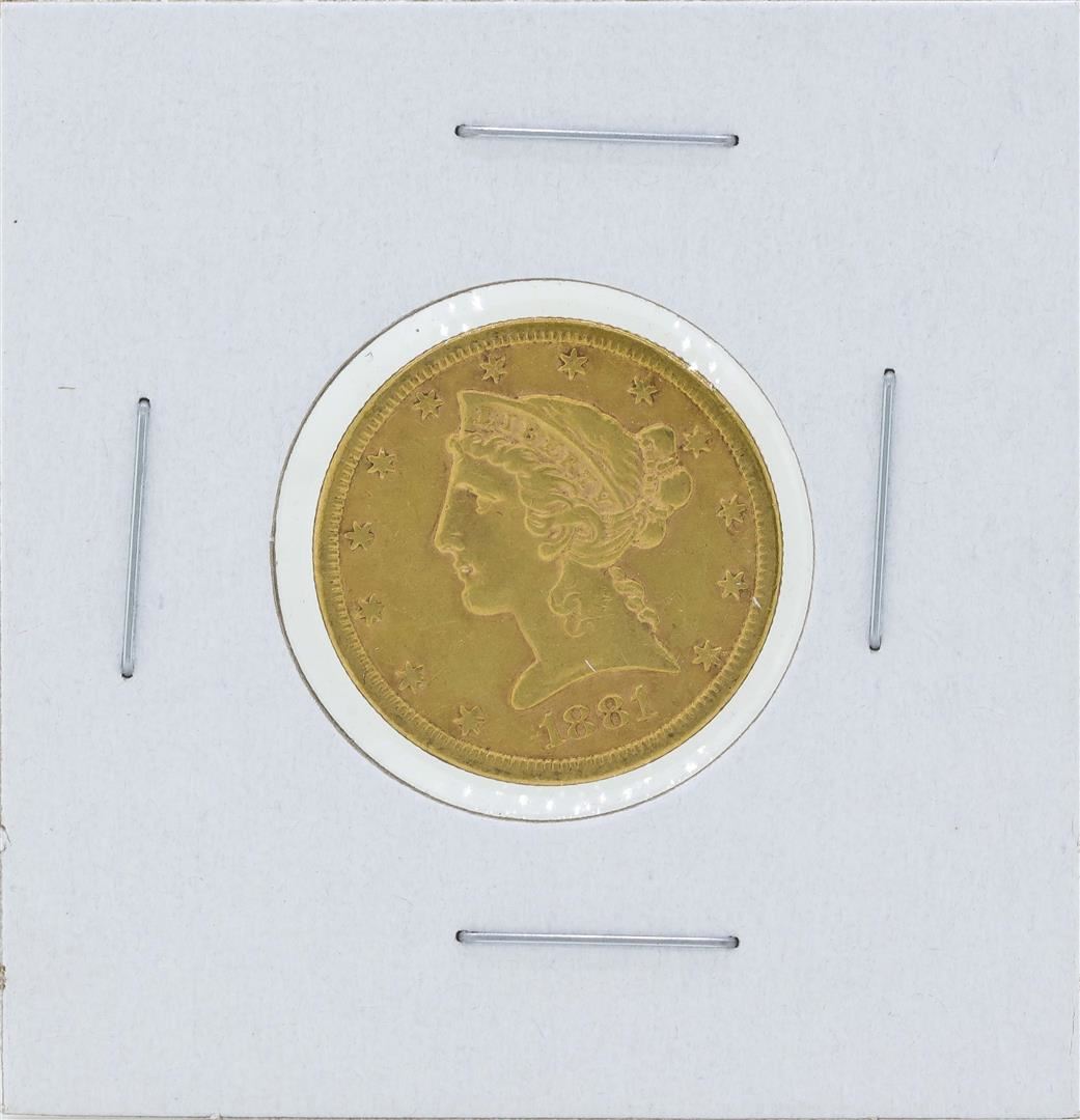 One 1881-S $5 Liberty Head Half Eagle Gold Coin.