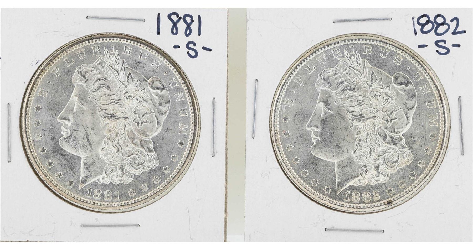 One 1881-S to 1882-S $1 Morgan Silver Dollar Coins.