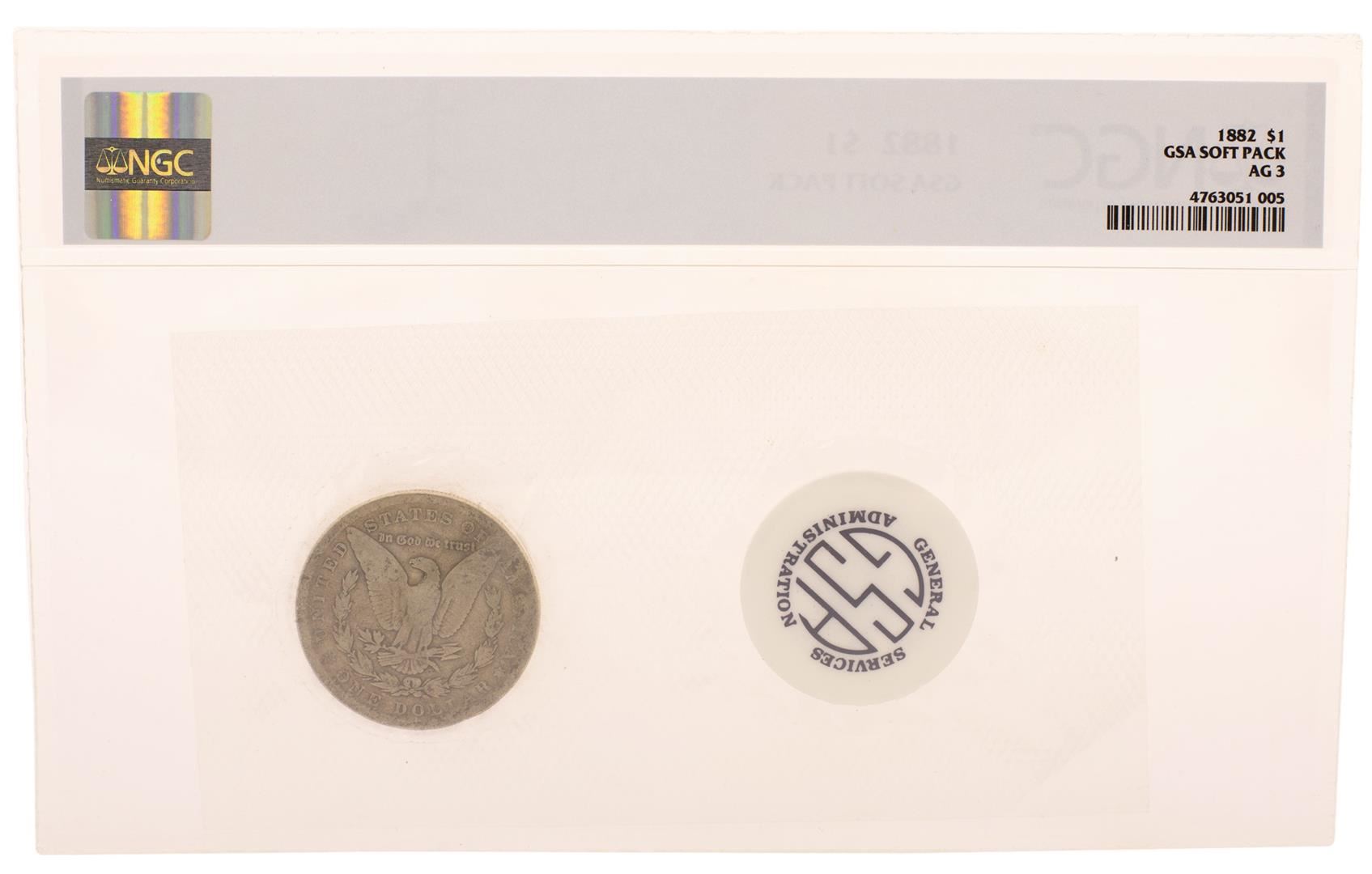 1882 $1 Morgan Silver Dollar Coin GSA Soft Pack NGC AG3 Lowest Known Grade
