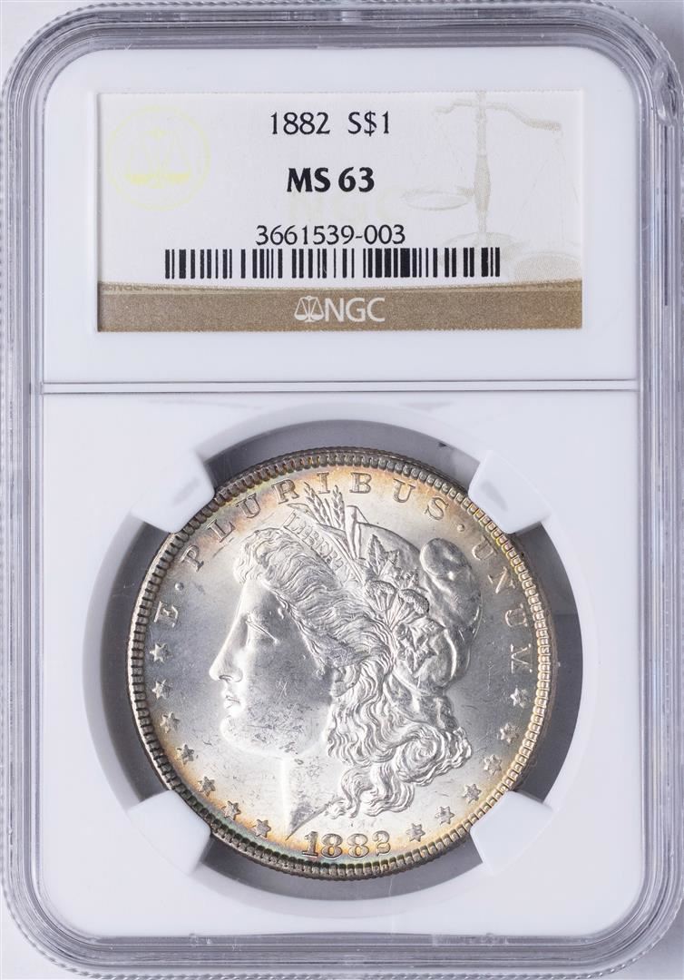 One 1882 $1 Morgan Silver Dollar Coin NGC MS63. NGC Certified.