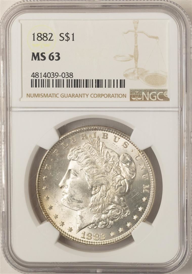 One 1882 $1 Morgan Silver Dollar Coin NGC MS63. NGC Certified.