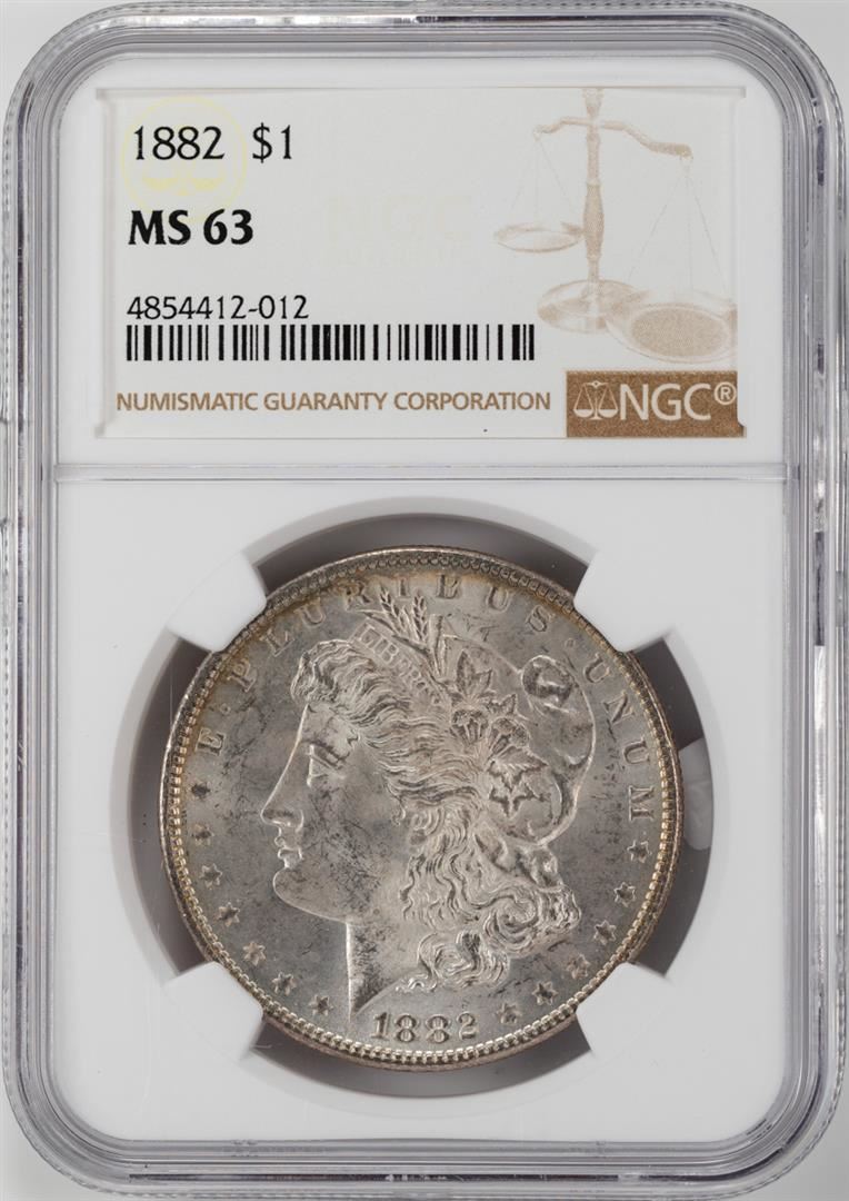One 1882 $1 Morgan Silver Dollar Coin NGC MS63. NGC Certified.