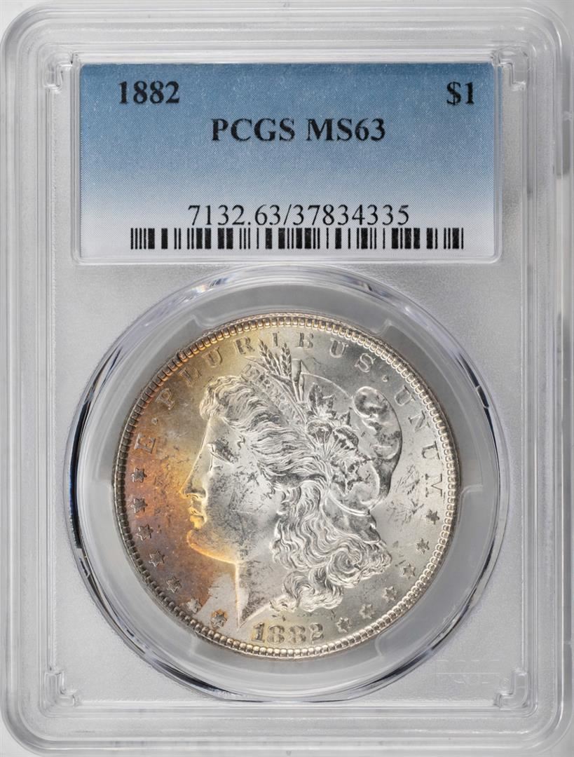 1882 $1 Morgan Silver Dollar Coin PCGS MS63 Amazing Toning