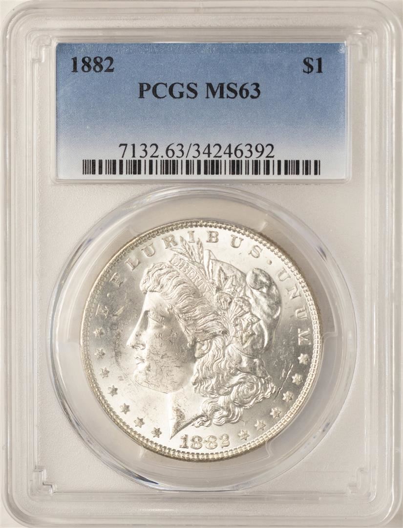 One 1882 $1 Morgan Silver Dollar Coin PCGS MS63. PCGS Graded.