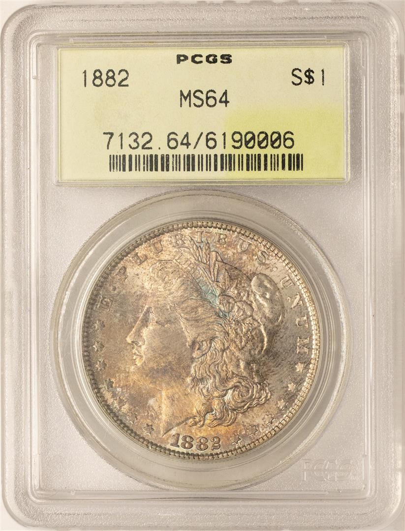 One 1882 $1 Morgan Silver Dollar Coin PCGS MS64 AMAZING TONING. PCGS Graded.