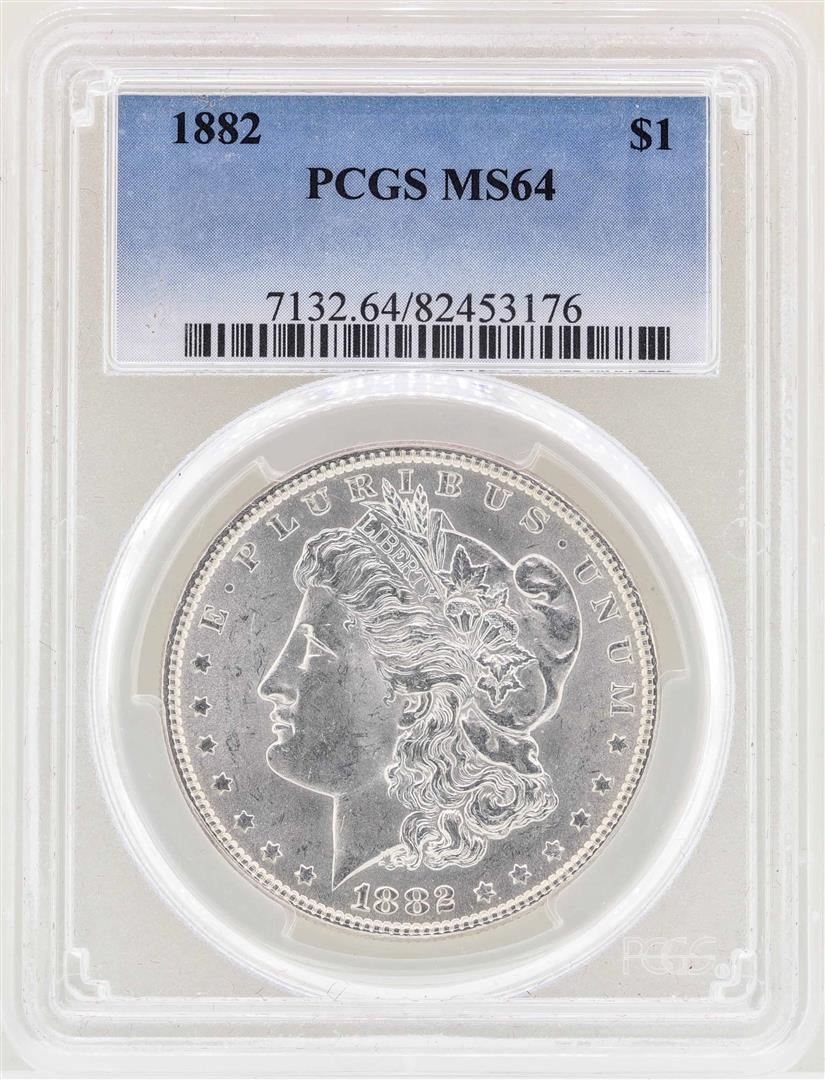 One 1882 $1 Morgan Silver Dollar Coin PCGS MS64. PCGS Graded.