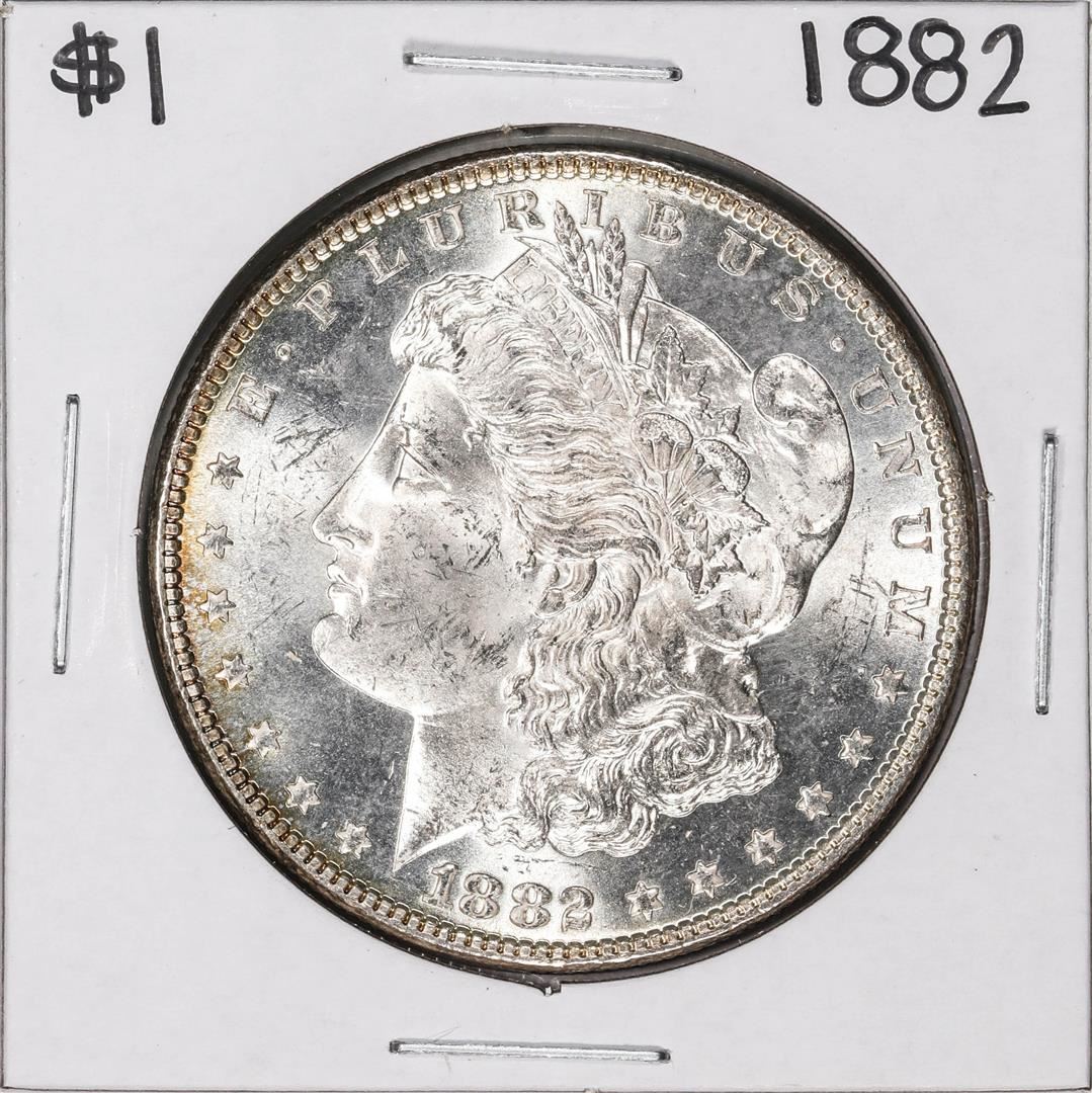 One 1882 $1 Morgan Silver Dollar Coin.